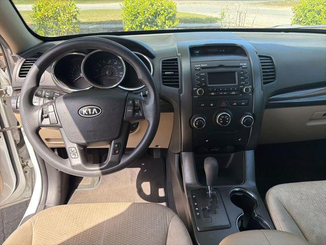 White 2012 Kia Sorento LX FWD 6-Speed Automatic with Sportmatic 2.4L 4-Cylinder DOHC 3.91 Axle Ratio, 4-Wheel Disc Brakes, 6 Speakers, 7.0"" x 17"" Alloy Wheels, ABS brakes, Air Conditioning, Alloy wheels, AM/FM radio: SiriusXM, AM/FM/CD/MP3 Radio, Anti-whiplash front head restraints, Brake assist, Bumpers: body-color, CD player, Delay-off headlights, Driver door bin, Driver vanity mirror, Dual front impact airbags, Dual front side impact airbags, Electronic Stability Control, Four wheel independent suspension, Front anti-roll bar, Front Bucket Seats, Front Center Armrest, Front reading lights, Heated door mirrors, Illuminated entry, Low tire pressure warning, Occupant sensing airbag, Overhead airbag, Overhead console, Panic alarm, Passenger door bin, Passenger vanity mirror, Power door mirrors, Power steering, Power windows, Rear anti-roll bar, Rear seat center armrest, Rear window defroster, Rear window wiper, Remote keyless entry, Speed control, Split folding rear seat, Steering wheel mounted audio controls, Tachometer, Telescoping steering wheel, Tilt steering wheel, Traction control, Tricot Fabric Seat Trim, Trip computer, Turn signal indicator mirrors, Variably intermittent wipers.Recent Arrival!Awards: * 2012 IIHS Top Safety Pick * 2012 KBB.com 10 Best Family Cars * 2012 KBB.com Total Cost of Ownership AwardsJaguar Land Rover Cape Fear in Wilmington, NC treats the needs of each individual customer with paramount concern. We know that you have high expectations, and as a car dealer we enjoy the challenge of meeting and exceeding those standards each and every time. Allow us to demonstrate our commitment to excellence! Our experienced sales staff is eager to share its knowledge and enthusiasm with you. We encourage you to browse our online inventory, schedule a test drive and investigate financing options. You can also request more information about a vehicle using our online form or by calling 855-822-5199. We look forward to serving you!Reviews: * The 2012 Kia Sorento promises a lot and never fails to deliver. It’s attractive, versatile, fuel-efficient, affordable, reliable, and it has one of the nicest interiors we’ve seen in this category in a long time. Source: KBB.com * Plentiful standard features; decent-size third-row seat, sporty handling; optional fuel-efficient four-cylinder; optional punchy V6; long warranty. Source: Edmunds