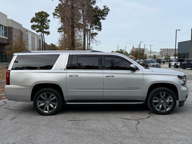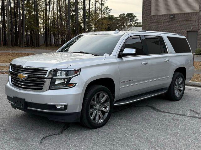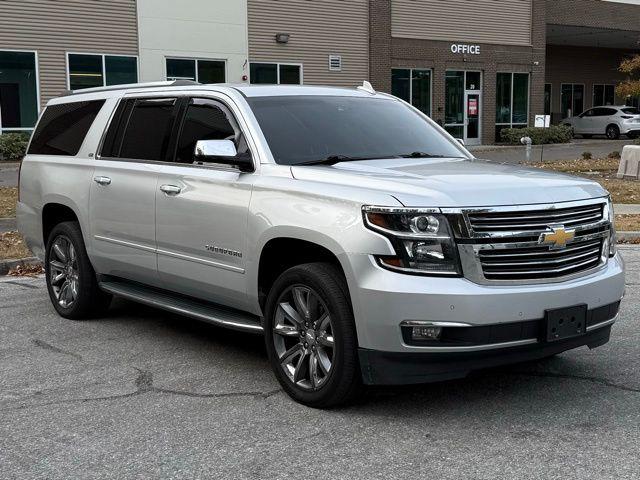 Silver Ice Metallic 2016 Chevrolet Suburban LTZ 4WD 6-Speed Automatic Electronic with Overdrive EcoTec3 5.3L V8 10 Speakers, 1st & 2nd Row Color-Keyed Carpeted Floor Mats, 3.08 Rear Axle Ratio, 3rd Row 60/40 Power Fold Split-Bench, 3rd Row DVD Screen, 3rd row seats: split-bench, 4-Wheel Antilock Disc Brakes, 4-Wheel Disc Brakes, 5 12-Volt Auxiliary Power Outlets, 6-Way Power Front Passenger Seat Adjuster, ABS brakes, Adaptive suspension, Adjustable pedals, Air Conditioning, Alloy wheels, AM/FM radio: SiriusXM, Apple CarPlay, Auto High-beam Headlights, Auto-dimming door mirrors, Auto-Dimming Inside Rear-View Mirror, Auto-dimming Rear-View mirror, Automatic temperature control, Black Assist Steps, Bodyside moldings, Bose Centerpoint Premium 10-Speaker Surround Sound, Brake assist, Bumpers: body-color, CD player, Color-Keyed Carpeting Floor Covering, Compass, Delay-off headlights, Driver & Front Passenger Airbags, Driver door bin, Driver vanity mirror, Dual front impact airbags, Dual front side impact airbags, Electronic Cruise Control w/Set & Resume Speed, Electronic Stability Control, Emergency communication system: OnStar Guidance, Enhanced Driver Alert Package (Y86), Enhanced Driver Instrument Information Display, Extended-Range Remote Keyless Entry, Exterior Parking Camera Rear, Floor Console w/Storage Area, Fog Lamps, Forward Collision Alert Sensor Indicator, Front & Rear Parking Assist, Front anti-roll bar, Front Bucket Seats, Front Center Armrest, Front dual zone A/C, Front fog lights, Front reading lights, Front wheel independent suspension, Fully automatic headlights, Garage door transmitter, Hands Free Power Liftgate, HD Radio, Headphones, Heated & Cooled Driver & Front Passenger Seats, Heated & Cooled Front Reclining Bucket Seats, Heated 2nd Row Seats, Heated door mirrors, Heated front seats, Heated Leather Wrapped Steering Wheel, Heated rear seats, Heated steering wheel, High-Intensity Discharge Headlights, Illuminated entry, Intellibeam Headlamps w/Automatic High Bean On/Off, Lane Departure Warning & Safety Alert Seat, Lane Keep Assist, Leather Shift Knob, Low tire pressure warning, Magnetic Ride Control Suspension Package, Memory seat, Memory Settings, Navigation System, Occupant sensing airbag, OnStar Basic Plan For 5 Years, OnStar w/4G LTE, Outside temperature display, Overhead airbag, Overhead console, Panic alarm, Passenger door bin, Passenger vanity mirror, Passive Entry System, Pedal memory, Perforated Leather-Appointed Seat Trim, Power door mirrors, Power driver seat, Power Folding & Adjustable Heated Outside Mirrors, Power Liftgate, Power passenger seat, Power Release 2nd Row Bucket Seats, Power steering, Power Tilt & Telescoping Steering Column, Power Tilt-Sliding Sunroof w/Express-Open/Close, Power windows, Power-Adjustable Accelerator & Brake Pedals, Preferred Equipment Group 1LZ, Push Button Keyless Start, Radio: Chevrolet MyLink AM/FM Stereo w/Navigation, Rain sensing wipers, Rear air conditioning, Rear anti-roll bar, Rear audio controls, Rear Cross-Traffic Alert Sensor Indicator, Rear reading lights, Rear Seat Entertainment System, Rear window defroster, Rear window wiper, Remote keyless entry, Roof rack: rails only, Roof-Mounted Luggage Rack Side Rails, Security system, Side Blind Zone Alert w/Lane Change Alert, Single-Slot CD/MP3 Player, SiriusXM Satellite Radio, Speed control, Speed-sensing steering, Split folding rear seat, Spoiler, Steering wheel memory, Steering wheel mounted audio controls, Sun, Entertainment & Destinations Package, Tachometer, Telescoping steering wheel, Tilt steering wheel, Traction control, Trip computer, Turn signal indicator mirrors, Universal Home Remote, Variably intermittent wipers, Ventilated front seats, Voltmeter, Wheels: 20"" x 9"" Polished-Aluminum, Wheels: 22"" Premium Painted w/Chrome Inserts, Wireless Charging.Recent Arrival!Jaguar Land Rover Cape Fear in Wilmington, NC treats the needs of each individual customer with paramount concern. We know that you have