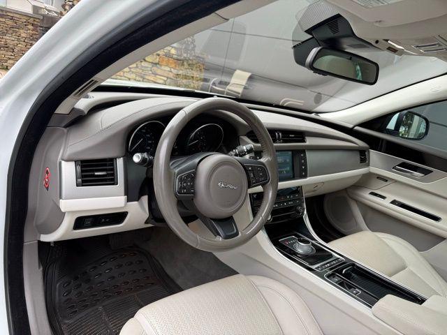 Polaris White 2016 Jaguar XF 35t Prestige RWD 8-Speed Automatic 3.0L V6 24V Supercharged Clean CARFAX. Light Oyster w/Taurus Leather Seat Trim, Power moonroof, Wheels: 19"" Razor-Style Twin 7-Spoke Alloy, 11 Speakers, 3-Stage Heated Front Bucket Seats, 4-Wheel Disc Brakes, ABS brakes, Air Conditioning, Alloy wheels, AM/FM radio, Anti-whiplash front head restraints, Auto tilt-away steering wheel, Auto-dimming door mirrors, Auto-dimming Rear-View mirror, Automatic temperature control, Brake assist, Bumpers: body-color, Compass, Delay-off headlights, Driver door bin, Driver vanity mirror, Dual front impact airbags, Dual front side impact airbags, Electronic Stability Control, Emergency communication system, Exterior Parking Camera Rear, Four wheel independent suspension, Front anti-roll bar, Front Bucket Seats, Front Center Armrest, Front dual zone A/C, Front reading lights, Fully automatic headlights, Garage door transmitter: HomeLink, Headlight cleaning, Heated door mirrors, Heated front seats, Heated steering wheel, High intensity discharge headlights: Bi-xenon, Illuminated entry, Low tire pressure warning, Memory seat, Navigation System, Occupant sensing airbag, Outside temperature display, Overhead airbag, Overhead console, Panic alarm, Passenger door bin, Passenger vanity mirror, Power door mirrors, Power driver seat, Power passenger seat, Power steering, Power windows, Radio data system, Radio: Meridian 380W Sound System w/11 Speakers, Rain sensing wipers, Rear anti-roll bar, Rear fog lights, Rear reading lights, Rear seat center armrest, Rear window defroster, Remote keyless entry, Security system, Speed control, Speed-sensing steering, Split folding rear seat, Steering wheel memory, Steering wheel mounted audio controls, Tachometer, Taurus Leather Seat Trim, Telescoping steering wheel, Tilt steering wheel, Traction control, Trip computer, Turn signal indicator mirrors, Variably intermittent wipers, Light Oyster w/Taurus Leather Seat Trim, Power moonroof, Wheels: 19"" Razor-Style Twin 7-Spoke Alloy.Recent Arrival! 20/30 City/Highway MPGAwards: * 2016 KBB.com Brand Image AwardsJaguar Land Rover Cape Fear in Wilmington, NC treats the needs of each individual customer with paramount concern. We know that you have high expectations, and as a car dealer we enjoy the challenge of meeting and exceeding those standards each and every time. Allow us to demonstrate our commitment to excellence! Our experienced sales staff is eager to share its knowledge and enthusiasm with you. We encourage you to browse our online inventory, schedule a test drive and investigate financing options. You can also request more information about a vehicle using our online form or by calling 855-822-5199. We look forward to serving you!Reviews: * Well-trimmed interior; responsive handling; comfortable ride; advanced technology offerings. Source: Edmunds