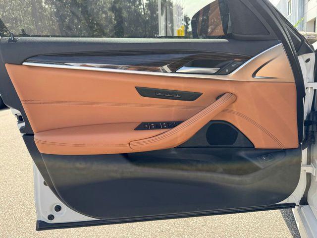 Alpine White 2022 BMW 5 Series 540i RWD 8-Speed Automatic Sport 3.0L I6 Turbocharged DOHC 24V LEV3-ULEV70 Clean CARFAX. Cognac Artificial Leather, Aerodynamic Kit, Extended Shadowline Trim, M Shadowline Lights, M Sport Brakes w/Red Calipers, M Sport Package, M Sport Pkg, M Sport Suspension, M Steering Wheel, Shadowline Exterior Trim, Shadowline Package, Variable Sport Steering, Wheels: 19"" x 8"" M Y-Spoke Bi-Color Jet Black, Without Lines Designation Outside, 12 Speakers, 4-Wheel Disc Brakes, ABS brakes, Air Conditioning, Alloy wheels, AM/FM radio: SiriusXM with 360L, Apple CarPlay & Android Auto Compatibility, Auto High-beam Headlights, Auto tilt-away steering wheel, Auto-dimming door mirrors, Auto-dimming Rear-View mirror, Automatic temperature control, BMW Assist eCall, BMW TeleServices, Brake assist, Bumpers: body-color, Connected Package Pro, ConnectedDrive Services, Delay-off headlights, Driver door bin, Driver vanity mirror, Dual front impact airbags, Dual front side impact airbags, Electronic Stability Control, Emergency communication system: BMW Assist eCall, Enhanced Bluetooth, Exterior Parking Camera Rear, Four wheel independent suspension, Front anti-roll bar, Front Bucket Seats, Front Center Armrest, Front dual zone A/C, Front reading lights, Fully automatic headlights, Garage door transmitter, Genuine wood console insert, Genuine wood dashboard insert, Genuine wood door panel insert, Heated door mirrors, Heated Front Seats, Hi-Fi Sound System, Illuminated entry, Leather Shift Knob, Leather steering wheel, Live Cockpit Pro w/Navi, Low tire pressure warning, Lumbar Support, Memory seat, Navigation System, Occupant sensing airbag, Outside temperature display, Overhead airbag, Panic alarm, Passenger door bin, Passenger vanity mirror, Perforated Sensatec Upholstery, Power door mirrors, Power driver seat, Power Front Seats, Power moonroof, Power passenger seat, Power steering, Power Tailgate, Power windows, Radio data system, Radio: AM/FM Audio System, Rain sensing wipers, Rear anti-roll bar, Rear reading lights, Rear seat center armrest, Rear window defroster, Remote keyless entry, Security system, SiriusXM w/360L, Speed control, Speed-sensing steering, Speed-Sensitive Wipers, Split folding rear seat, Sport Seats, Sport steering wheel, Steering wheel memory, Steering wheel mounted audio controls, Tachometer, Telescoping steering wheel, Tilt steering wheel, Traction control, Trip computer, Turn signal indicator mirrors, Variably intermittent wipers, Cognac Artificial Leather, Aerodynamic Kit, Extended Shadowline Trim, M Shadowline Lights, M Sport Brakes w/Red Calipers, M Sport Package, M Sport Pkg, M Sport Suspension, M Steering Wheel, Shadowline Exterior Trim, Shadowline Package, Variable Sport Steering, Wheels: 19"" x 8"" M Y-Spoke Bi-Color Jet Black, Without Lines Designation Outside.Recent Arrival! 25/32 City/Highway MPGJaguar Land Rover Cape Fear in Wilmington, NC treats the needs of each individual customer with paramount concern. We know that you have high expectations, and as a car dealer we enjoy the challenge of meeting and exceeding those standards each and every time. Allow us to demonstrate our commitment to excellence! Our experienced sales staff is eager to share its knowledge and enthusiasm with you. We encourage you to browse our online inventory, schedule a test drive and investigate financing options. You can also request more information about a vehicle using our online form or by calling 855-822-5199. We look forward to serving you!