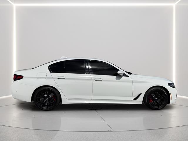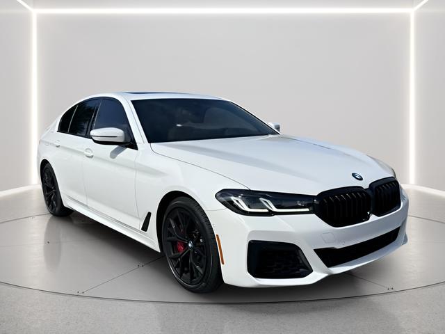 Alpine White 2022 BMW 5 Series 540i RWD 8-Speed Automatic Sport 3.0L I6 Turbocharged DOHC 24V LEV3-ULEV70 Clean CARFAX. Cognac Artificial Leather, Aerodynamic Kit, Extended Shadowline Trim, M Shadowline Lights, M Sport Brakes w/Red Calipers, M Sport Package, M Sport Pkg, M Sport Suspension, M Steering Wheel, Shadowline Exterior Trim, Shadowline Package, Variable Sport Steering, Wheels: 19"" x 8"" M Y-Spoke Bi-Color Jet Black, Without Lines Designation Outside, 12 Speakers, 4-Wheel Disc Brakes, ABS brakes, Air Conditioning, Alloy wheels, AM/FM radio: SiriusXM with 360L, Apple CarPlay & Android Auto Compatibility, Auto High-beam Headlights, Auto tilt-away steering wheel, Auto-dimming door mirrors, Auto-dimming Rear-View mirror, Automatic temperature control, BMW Assist eCall, BMW TeleServices, Brake assist, Bumpers: body-color, Connected Package Pro, ConnectedDrive Services, Delay-off headlights, Driver door bin, Driver vanity mirror, Dual front impact airbags, Dual front side impact airbags, Electronic Stability Control, Emergency communication system: BMW Assist eCall, Enhanced Bluetooth, Exterior Parking Camera Rear, Four wheel independent suspension, Front anti-roll bar, Front Bucket Seats, Front Center Armrest, Front dual zone A/C, Front reading lights, Fully automatic headlights, Garage door transmitter, Genuine wood console insert, Genuine wood dashboard insert, Genuine wood door panel insert, Heated door mirrors, Heated Front Seats, Hi-Fi Sound System, Illuminated entry, Leather Shift Knob, Leather steering wheel, Live Cockpit Pro w/Navi, Low tire pressure warning, Lumbar Support, Memory seat, Navigation System, Occupant sensing airbag, Outside temperature display, Overhead airbag, Panic alarm, Passenger door bin, Passenger vanity mirror, Perforated Sensatec Upholstery, Power door mirrors, Power driver seat, Power Front Seats, Power moonroof, Power passenger seat, Power steering, Power Tailgate, Power windows, Radio data system, Radio: AM/FM Audio System, Rain sensing wipers, Rear anti-roll bar, Rear reading lights, Rear seat center armrest, Rear window defroster, Remote keyless entry, Security system, SiriusXM w/360L, Speed control, Speed-sensing steering, Speed-Sensitive Wipers, Split folding rear seat, Sport Seats, Sport steering wheel, Steering wheel memory, Steering wheel mounted audio controls, Tachometer, Telescoping steering wheel, Tilt steering wheel, Traction control, Trip computer, Turn signal indicator mirrors, Variably intermittent wipers, Cognac Artificial Leather, Aerodynamic Kit, Extended Shadowline Trim, M Shadowline Lights, M Sport Brakes w/Red Calipers, M Sport Package, M Sport Pkg, M Sport Suspension, M Steering Wheel, Shadowline Exterior Trim, Shadowline Package, Variable Sport Steering, Wheels: 19"" x 8"" M Y-Spoke Bi-Color Jet Black, Without Lines Designation Outside.Recent Arrival! 25/32 City/Highway MPGJaguar Land Rover Cape Fear in Wilmington, NC treats the needs of each individual customer with paramount concern. We know that you have high expectations, and as a car dealer we enjoy the challenge of meeting and exceeding those standards each and every time. Allow us to demonstrate our commitment to excellence! Our experienced sales staff is eager to share its knowledge and enthusiasm with you. We encourage you to browse our online inventory, schedule a test drive and investigate financing options. You can also request more information about a vehicle using our online form or by calling 855-822-5199. We look forward to serving you!