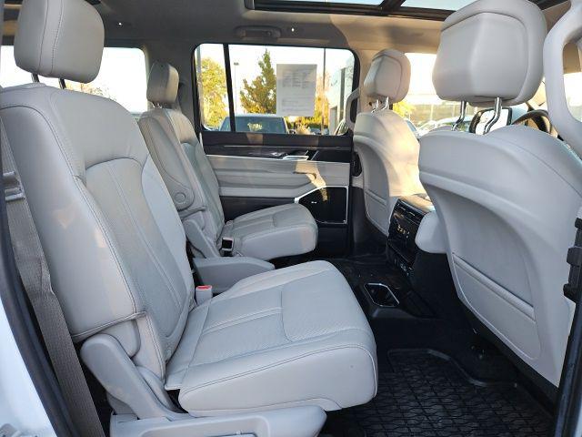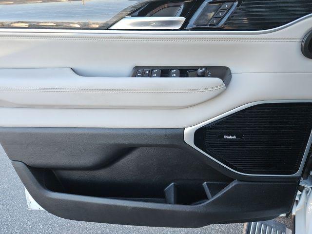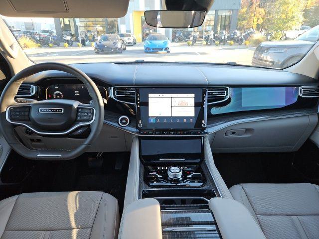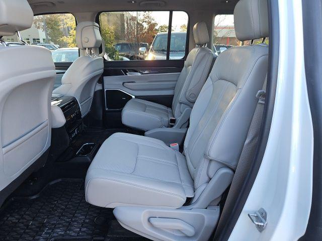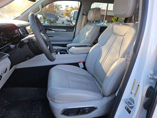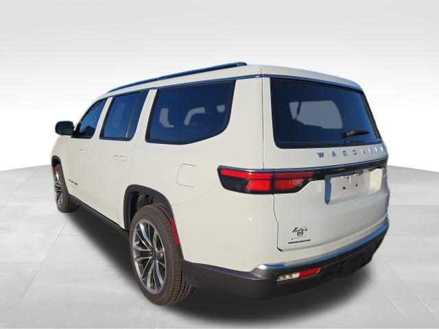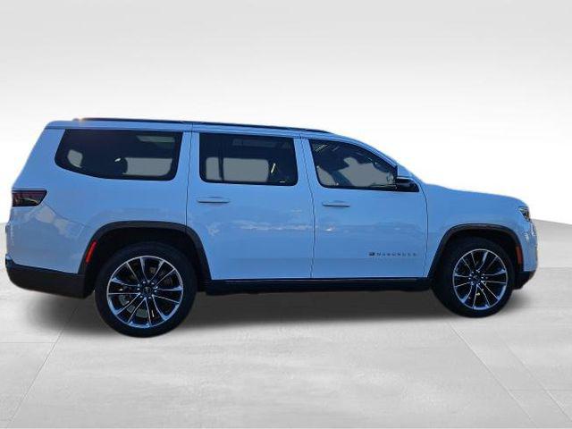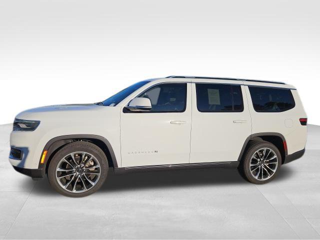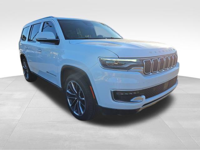 Bright White Clearcoat 2022 Jeep Wagoneer Series III 4WD 8-Speed Automatic 5.7L V8 CARFAX One-Owner. 19 Speaker McIntosh Audio System, 3 Panel Sunroof, 7-Passenger Seating, Adjustable Roof Rail Crossbars, Cargo Cover, Flexible Seating Group, Floor Console w/Cupholder, Front Passenger Interactive Display, Luxury Front & Rear Floor Mats, Power Deployable Running Boards, Power Tip/Slide Recline 2nd Row Buckets, Premium Group I (DISC), Reversible Carpet/Vinyl Cargo Mat, Wheels: 22"" x 9.0"" Premium 3 Aluminum (DISC), 10 Speakers, 3.21 Rear Axle Ratio, 3rd row seats: bench, 4-Wheel Disc Brakes, ABS brakes, Adjustable pedals, Air Conditioning, All-Season Floor Mats, Alloy wheels, AM/FM radio: SiriusXM with 360L, Anti-whiplash front head restraints, Audio memory, Auto High-beam Headlights, Auto-dimming door mirrors, Auto-dimming Rear-View mirror, Auto-leveling suspension, Automatic temperature control, Brake assist, Bumpers: body-color, Cargo Tray, Compass, Delay-off headlights, Driver door bin, Driver vanity mirror, Driver's Seat Mounted Armrest, Dual front impact airbags, Dual front side impact airbags, Electronic Stability Control, Exterior Parking Camera Rear, Four wheel independent suspension, Front anti-roll bar, Front Bucket Seats, Front Center Armrest w/Storage, Front dual zone A/C, Front fog lights, Front reading lights, Fully automatic headlights, Garage door transmitter, Genuine wood console insert, Genuine wood dashboard insert, Genuine wood door panel insert, Heads-Up Display, Heated door mirrors, Heated front seats, Heated rear seats, Heated steering wheel, Illuminated entry, Knee airbag, Leather Trimmed Bucket Seats, Low tire pressure warning, Memory seat, MOPAR Interior Protection Package, Navigation System, Normal Duty Suspension, Occupant sensing airbag, Outside temperature display, Overhead airbag, Overhead console, Panic alarm, Passenger door bin, Passenger seat mounted armrest, Passenger vanity mirror, Pedal memory, Power adjustable front head restraints, Power door mirrors, Power driver seat, Power Liftgate, Power passenger seat, Power steering, Power windows, Quick Order Package 22N, Radio data system, Radio: Uconnect 5 Nav w/10.1"" Display, Rain sensing wipers, Rear air conditioning, Rear anti-roll bar, Rear dual zone A/C, Rear reading lights, Rear seat center armrest, Rear window defroster, Rear window wiper, Reclining 3rd row seat, Remote keyless entry, Security system, Speed control, Speed-sensing steering, Speed-Sensitive Wipers, Split folding rear seat, Steering wheel memory, Steering wheel mounted audio controls, Tachometer, Telescoping steering wheel, Tilt steering wheel, Traction control, Trip computer, Turn signal indicator mirrors, Variably intermittent wipers, Ventilated front seats, Voltmeter, 19 Speaker McIntosh Audio System, 3 Panel Sunroof, 7-Passenger Seating, Adjustable Roof Rail Crossbars, Cargo Cover, Flexible Seating Group, Floor Console w/Cupholder, Front Passenger Interactive Display, Luxury Front & Rear Floor Mats, Power Deployable Running Boards, Power Tip/Slide Recline 2nd Row Buckets, Premium Group I (DISC), Reversible Carpet/Vinyl Cargo Mat, Wheels: 22"" x 9.0"" Premium 3 Aluminum (DISC).Recent Arrival! Odometer is 7960 miles below market average!Jaguar Land Rover Cape Fear in Wilmington, NC treats the needs of each individual customer with paramount concern. We know that you have high expectations, and as a car dealer we enjoy the challenge of meeting and exceeding those standards each and every time. Allow us to demonstrate our commitment to excellence! Our experienced sales staff is eager to share its knowledge and enthusiasm with you. We encourage you to browse our online inventory, schedule a test drive and investigate financing options. You can also request more information about a vehicle using our online form or by calling 855-822-5199. We look forward to serving you!