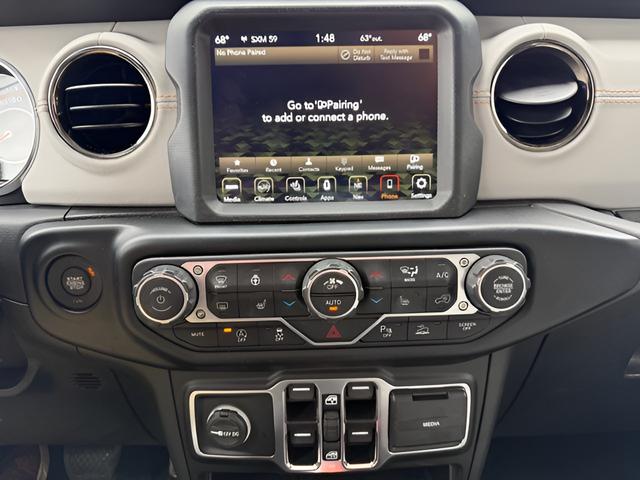 Black Clearcoat 2023 Jeep Gladiator High Altitude 4WD 8-Speed Automatic 3.0L V6 Turbodiesel CARFAX One-Owner. 240 Amp Alternator, ABS 4-Wheel HD Disc Brakes w/CI Knuckle, Blind Spot & Cross Path Detection, Body Color 3-Piece Hard Top, Body Color Front Bumper, Body Color Grille w/Gloss Black Rings, Body Color Rear Bumper w/Step Pads, Body-Color Door & Tailgate Handles, Caramel Interior Accents, Class IV Receiver Hitch, Cold Weather Group, Dana M210 Wide Front Axle, Dana M220 Wide Rear Axle, Daytime Running Lamps LED Accents, Exterior Mirrors w/Supplemental Signals, Freedom Panel Storage Bag, Front LED Fog Lamps, Full Body Color Fender Flares, Full Length Floor Console Premium Armrest, Gloss Black Limited Badge, Gray/Black Trail Rated Badge, Heated Front Seats, Heated Steering Wheel, Heavy-Duty Engine Cooling, High Altitude Package, Leather Wrapped Park Brake Handle, Leather Wrapped Shift Knob, LED Lighting Group, LED Park Turn Lamps, LED Premium Reflector Headlamps, LED Taillamps, MOPAR Spray In Bedliner, Nappa Leather Seats, No Soft Top, ParkSense Rear Park Assist System, Premium Dark Exterior Accents, Quick Order Package 26N High Altitude, Rear Armrest w/Cupholder Seat, Rear Sliding Window, Rear Window Defroster, Remote Start System, Safety Group, Side Steps, Sport Front Shock Absorbers, Sport Rear Shock Absorbers, Sport Suspension, Trailer Hitch Zoom, Trailer Tow Package, Wheels: 20"" x 8"" Gloss Black Aluminum, Wrapped I/P Bezel w/Caramel Stitch, 3.73 Rear Axle Ratio, 4-Wheel Disc Brakes, 9 Speakers, ABS brakes, Air Conditioning, Alloy wheels, AM/FM radio: SiriusXM, Anti-Spin Differential Rear Axle, Apple CarPlay/Android Auto, Auto-dimming Rear-View mirror, Automatic temperature control, Brake assist, Compass, Delay-off headlights, Driver door bin, Driver vanity mirror, Dual front impact airbags, Dual front side impact airbags, Electronic Stability Control, Emergency communication system, Front anti-roll bar, Front Bucket Seats, Front Center Armrest w/Storage, Front dual zone A/C, Front fog lights, Front reading lights, Fully automatic headlights, Garage door transmitter, Heated door mirrors, Illuminated entry, Integrated roll-over protection, Low tire pressure warning, Navigation System, Normal Duty Plus Suspension (DISC), Occupant sensing airbag, Outside temperature display, Overland Cloth Bucket Seats (DISC), Panic alarm, ParkView Rear Back-Up Camera, Passenger door bin, Passenger vanity mirror, Power door mirrors, Power steering, Power windows, Radio data system, Radio: Uconnect 4C Nav w/8.4"" Display, Rear anti-roll bar, Rear reading lights, Remote keyless entry, Security system, Selec-Speed Control, Speed control, Split folding rear seat, Steering wheel mounted audio controls, Tachometer, Telescoping steering wheel, Tilt steering wheel, Traction control, Trip computer, Variably intermittent wipers, Voltmeter, Wheels: 18"" x 7.5"" Granite Crystal Aluminum (DISC), 240 Amp Alternator, ABS 4-Wheel HD Disc Brakes w/CI Knuckle, Blind Spot & Cross Path Detection, Body Color 3-Piece Hard Top, Body Color Front Bumper, Body Color Grille w/Gloss Black Rings, Body Color Rear Bumper w/Step Pads, Body-Color Door & Tailgate Handles, Caramel Interior Accents, Class IV Receiver Hitch, Cold Weather Group, Dana M210 Wide Front Axle, Dana M220 Wide Rear Axle, Daytime Running Lamps LED Accents, Exterior Mirrors w/Supplemental Signals, Freedom Panel Storage Bag, Front LED Fog Lamps, Full Body Color Fender Flares, Full Length Floor Console Premium Armrest, Gloss Black Limited Badge, Gray/Black Trail Rated Badge, Heated Front Seats, Heated Steering Wheel, Heavy-Duty Engine Cooling, High Altitude Package, Leather Wrapped Park Brake Handle, Leather Wrapped Shift Knob, LED Lighting Group, LED Park Turn Lamps, LED Premium Reflector Headlamps, LED Taillamps, MOPAR Spray In Bedliner, Nappa Leather Seats, No Soft Top, ParkSense Rear Park Assist System, Premium Dark Exterior Accents, Quick Order Package 26N High Altitude, Rear Armrest w/Cupholder Seat, R