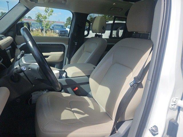 Certified. Fuji White 2023 Land Rover Defender 110 SE 4WD 8-Speed Automatic 3.0L I6 CARFAX One-Owner. Clean CARFAX. Land Rover Approved Certified Pre-Owned Certified, Air Suspension Pack, Black Exterior Pack, Cold Climate Pack, Gloss Black Front Grille, Headlight Power Wash, Heated Steering Wheel, Heated Washer Jets, Heated Windscreen, Wheels: 20"" Gloss Black Finish Style 6011, 12-Way Heated & Cooled Electric Memory Seats, 15 Speakers, 3.55 Axle Ratio, 4-Wheel Disc Brakes, ABS brakes, Air Conditioning, Alloy wheels, AM/FM radio: SiriusXM, Apple CarPlay & Android Auto, Auto High-beam Headlights, Auto-dimming door mirrors, Auto-dimming Rear-View mirror, Automatic temperature control, Brake assist, Bumpers: body-color, Compass, Delay-off headlights, Driver door bin, Driver vanity mirror, Dual front impact airbags, Dual front side impact airbags, Electronic Stability Control, Exterior Parking Camera Rear, Four wheel independent suspension, Front anti-roll bar, Front Bucket Seats, Front Center Armrest, Front dual zone A/C, Front fog lights, Front reading lights, Fully automatic headlights, Garage door transmitter: HomeLink, Grained Leather Seat Trim, Heated door mirrors, Heated front seats, Illuminated entry, Leather Shift Knob, Leather steering wheel, Low tire pressure warning, Memory seat, Navigation system: Connected Navigation PIVI Pro, Occupant sensing airbag, Outside temperature display, Overhead airbag, Overhead console, Panic alarm, Passenger door bin, Passenger vanity mirror, Power door mirrors, Power driver seat, Power moonroof, Power passenger seat, Power steering, Power windows, Radio data system, Radio: 700W 15 Speaker Meridian Surround Sound Sys, Rain sensing wipers, Rear anti-roll bar, Rear fog lights, Rear reading lights, Rear seat center armrest, Rear window defroster, Rear window wiper, Remote keyless entry, Security system, Speed control, Speed-sensing steering, Speed-Sensitive Wipers, Split folding rear seat, Steering wheel mounted audio controls, Tachometer, Telescoping steering wheel, Tilt steering wheel, Traction control, Trip computer, Variably intermittent wipers, Ventilated front seats, Weather band radio, Air Suspension Pack, Black Exterior Pack, Cold Climate Pack, Gloss Black Front Grille, Headlight Power Wash, Heated Steering Wheel, Heated Washer Jets, Heated Windscreen, Wheels: 20"" Gloss Black Finish Style 6011.Recent Arrival!Land Rover Approved Certified Pre-Owned Details: * Transferable Warranty * Roadside Assistance * Up to 1-year/Unlimited Miles or 2-year/100,000 Miles (whichever occurs first) Vehicle must have minimum one year of coverage at point of sale * Warranty Deductible: $0 * 165 Point Inspection * Vehicle HistoryJaguar Land Rover Cape Fear in Wilmington, NC treats the needs of each individual customer with paramount concern. We know that you have high expectations, and as a car dealer we enjoy the challenge of meeting and exceeding those standards each and every time. Allow us to demonstrate our commitment to excellence! Our experienced sales staff is eager to share its knowledge and enthusiasm with you. We encourage you to browse our online inventory, schedule a test drive and investigate financing options. You can also request more information about a vehicle using our online form or by calling 855-822-5199. We look forward to serving you!